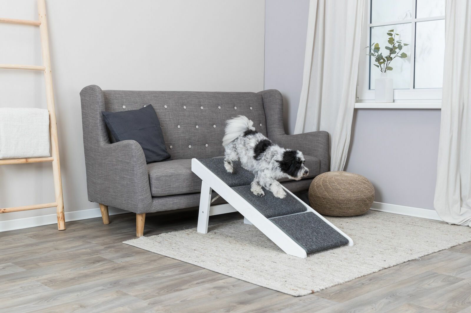 ドイツの有名ブランド!トリクシーは世界中で販売されている人気ブランドです。 ついに待望の2WAYスロープが新登場!!ペットがソファから降りるときに重宝するスロープです。MDF合板でできていてわんちゃんが歩く面は滑り止めでフェルトが張られています。