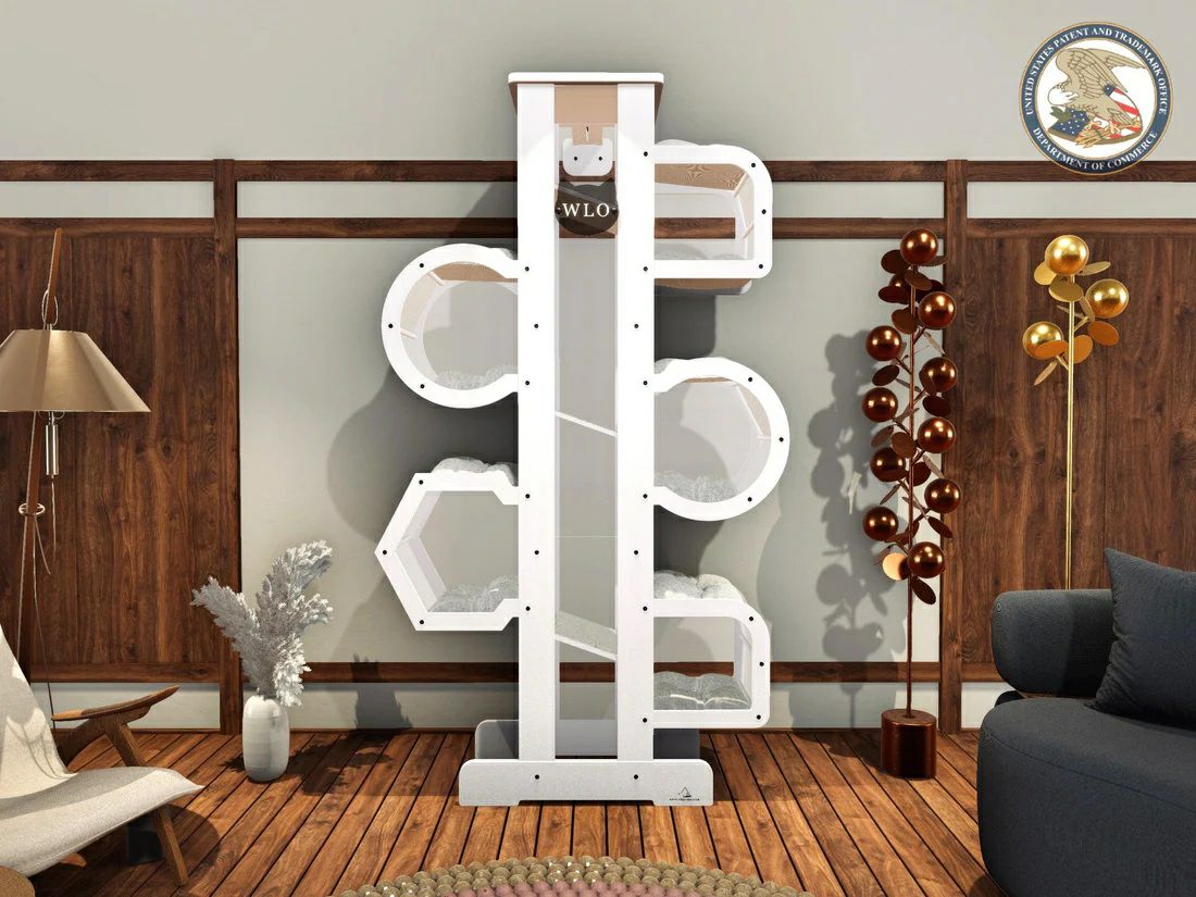 世界特許取得済デザインのスタイリッシュな室内用ペットケージです。 猫用 キャットタワー WLOwood ヘキサゴンコンパクトキャットシェルフ