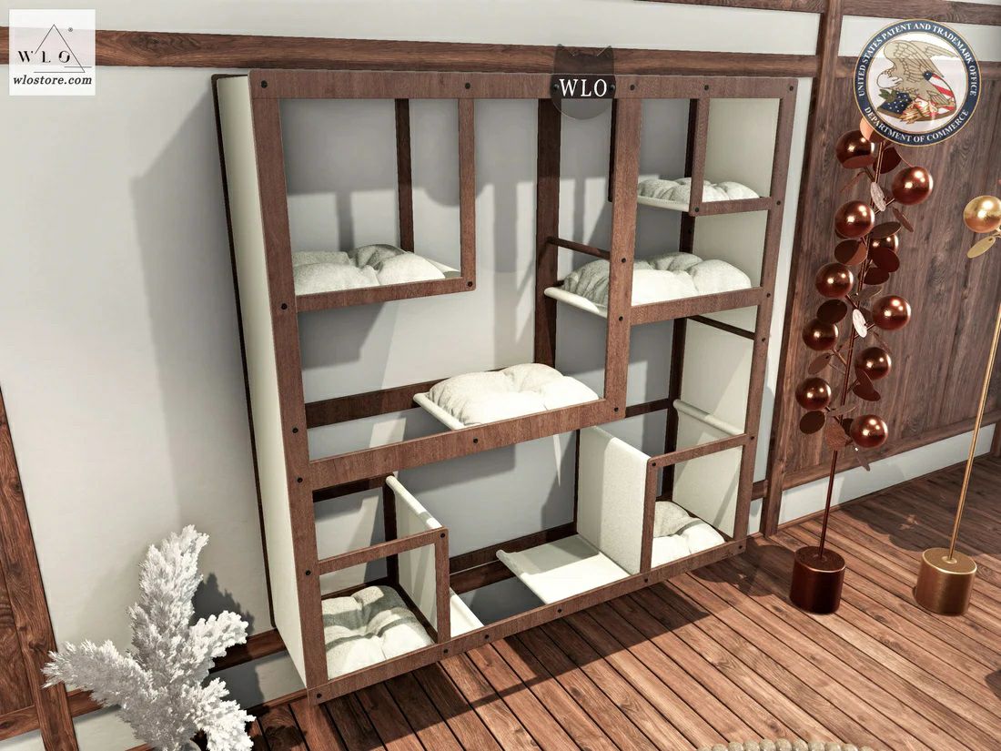 世界特許取得済デザインのスタイリッシュな室内用ペットケージです。 猫用 キャットタワー WLOwood スクエアコンパクトキャットシェルフ