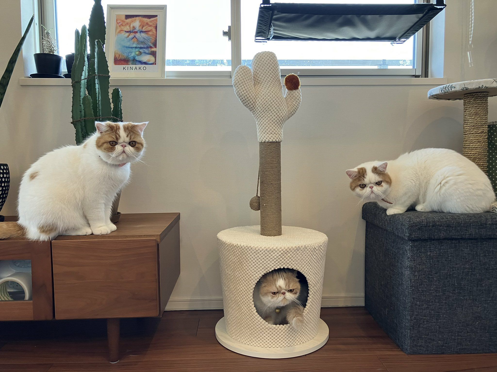 上部のサボテンをあしらったスクラッチポストと中に柔らかいポリエステルが詰め込まれたサボテンみたいなやつがかわいいです。