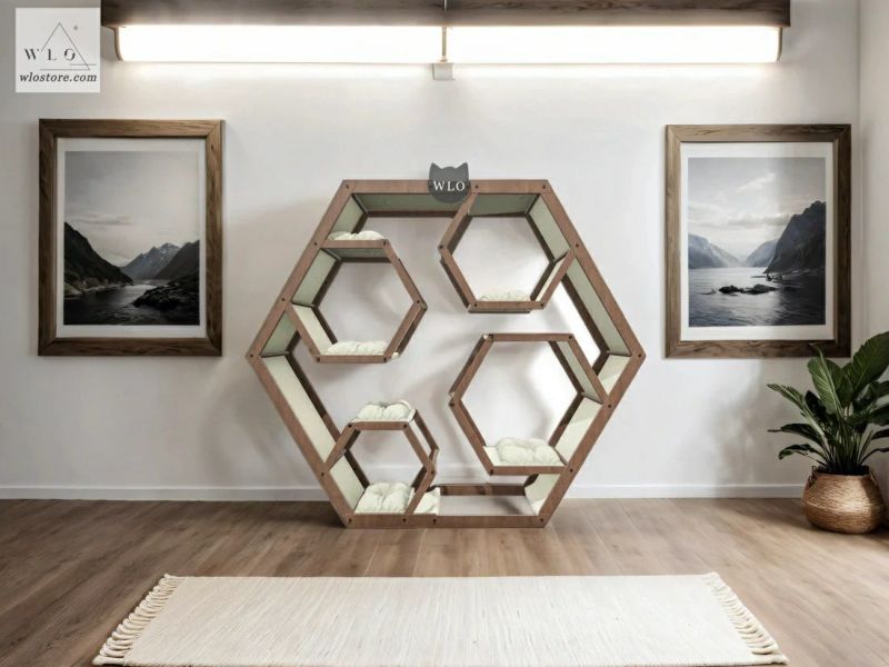三角形、六角形、丸型、四角形のモデルがあり、あらゆるスペースに最適なコンパクトなキャットタワーとキャットラウンジです。