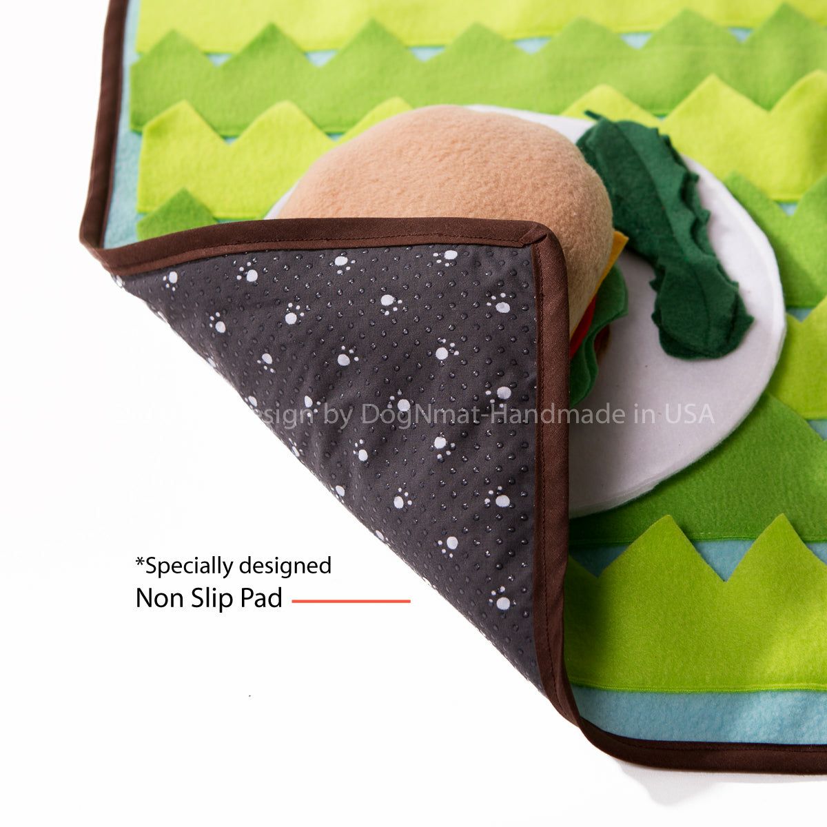 すべてのスナッフルマットは、米国で手作りされたシグネチャーデザインです。このスナッフルおもちゃには、おやつを隠すためのスポットがたくさんあります。
