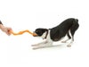 咥えやすい形をしているうえ、やわらかくしなって伸びるので引っ張りっこに最適。