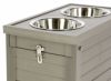 アメリカニューエイジペットは株式会社ALLFORWANが日本総輸入販売代理になっているブランドです。日本メーカーの商品ではほとんどない大型犬や超大型犬やうさぎ小屋などに特化したオリジナルのEcoFlexというエコ素材を使用したペットメーカー! ecoFlexとはリサイクルポリマーと木をブレンドして作られたエコ素材で、その特徴は全天候型(気温と湿度の変化に対応)、腐敗しにくい(腐りにくい)虫が寄ってきにくい、常に形状が安定しているという特徴があります。またねじれにくい、曲がりにくい、ひびが入りにくいなど様々な特徴があり、中のわんちゃんを傷つけることがありません。 エサ入れなどのストレージとフードボウルスタンドがセットになったダブルダイナーです。ecoFlexでできています。大型犬ちゃんサイズの餌台、餌入れです。普段はそのまま食器台として大型犬ちゃんなどの首の高さに負担がかからないような高さになっています。 ストレージ自体におもちゃやドッグフードなどを収納でいるボックスになっていてスライドしてフードボウルを取りつけて側面のロックでしっかりと取り付けできます。 フードボウル自体も3段階に高さを調節できる可変足つきで、わんちゃんの体の高さに合わせて足を折りたたむことによって3段階に調節できます。 サイズ:39.6 H x 54 W x 30 Dcm 32OZのボウルが2個