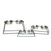 ステンレスのフードボウル付き!ミッションスタイル風のスタンド 大型犬ちゃんや超大型犬ちゃんにピッタリサイズのフードボウル! フードボウルはワンちゃんの体高にあわせて、適度な高さに設置してあげないと前足や首、腰に負担がかかってしまいます。 安定感や重厚感があり、足は滑り止め付。 安定したスタンドがフードボウルを適度な高さにキープします。 専用のボウルはステンレス製なので錆びにくく、アレルギー体質のワンちゃんにも比較的安心してお使いいただけます。ボウル自体もとても軽いので毎日のお手入れも楽々。 スタンド正面に入ったミッションスタイル風がインテリアのアクセントに。 もちろん、ごはん用としてだけでなく、お水用としてもお使いいただけます。 毎日使う食器だからこそ、身体に負担がかからず永く愛用できるものが良いですね♪ ☆選べる高さ3種類 ☆ステンレスのボウル2個付き ☆フードボウルとしてもウォーターボウルとしてもお使いいただけます 【サイズ】 Small: 12.7 H x 35.6 W x 16.5 Dcm Medium: 17.8 H x 45.7 W x 20.3 Dcm Large: 30.5 H x 56 W x 25.4 Dcm, X-Large: 45.7 H x 56 W x 25.4 Dcm XX-Large: 61 H x 56 W x 25.4 Dcm 【素材】  フードボウル: ステンレス スタンド: ワイアード・ロートアイアン ※スタンドのお色はブラックです