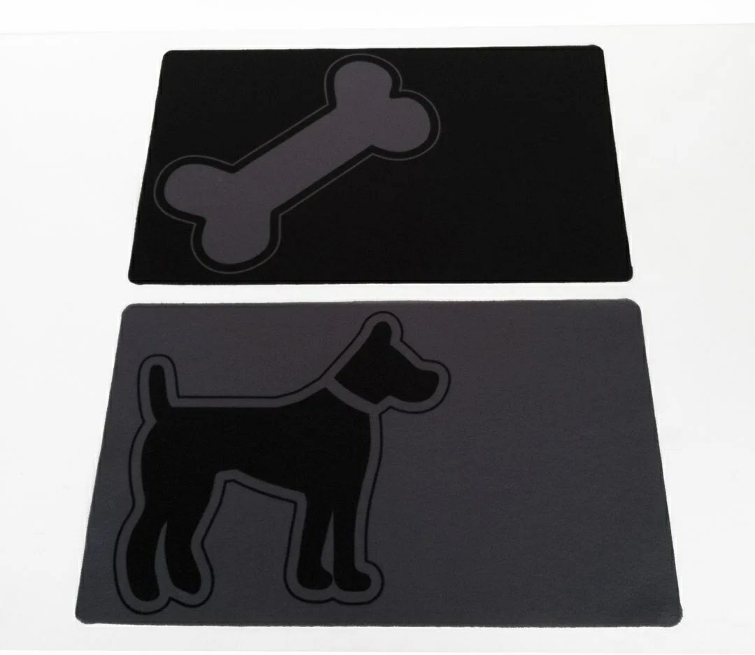 【アメリカPETSSTOP】シカゴからデザインがかわいいペット用品が登場! 犬用 フードボウルマット PETSSTOP ペッツストップ シングルダイナーフードボウルマットL ドッグ Gray Mat with Blk Dog - Single Diner
