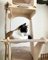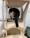 猫が引っ掻いたり、遊んだり、登ったりするのに使用できるロープは、天然素材の麻で作られています。