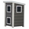 日本メーカーの商品ではほとんどない大型犬や超大型犬やうさぎ小屋などに特化したオリジナルのEcoFlexというエコ素材を使用したペットメーカー! ecoFlexとはリサイクルポリマーと木をブレンドして作られたエコ素材で、その特徴は全天候型(気温と湿度の変化に対応)、腐敗しにくい(腐りにくい)虫が寄ってきにくい、常に形状が安定しているという特徴があります。またねじれにくい、曲がりにくい、ひびが入りにくいなど様々な特徴があります。人気のアルバニーキャットハウスが2階建てになって新登場!最も人気のあるタイプの屋外キャットハウスです。ecoFlexでできています。屋外のネコちゃんに適したデザインになっています。正面にはそれぞれのフロア用にドアがついています。2階部分には側面にもドアがあります。1階から2階へは室内から移動可能。ドアには全てビニールドアがついています。 サイズ外寸: 48.5 D x 54.1 W x 82 H cm Door: 16 H x 16 W cm
