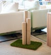 サイザル麻で包まれた猫の引っ掻きポスト 3 本と、屋内用の芝マット ベースが含まれています。 安定性を高めるために、ベースの底にある 4 つのレベリング グライドが含まれています。