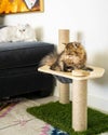 サイザル麻で包まれた猫の引っ掻きポスト 3 本と、屋内用の芝マット ベースが含まれています。 安定性を高めるために、ベースの底にある 4 つのレベリング グライドが含まれています。