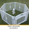 屋内と屋外の両方で使用できるように設計されたこのアメリカ製の自立型犬用運動ペンは、どこにでも最大 1.7平方メートル (幅 152.5cm以上) の保護スペースを作り出します。