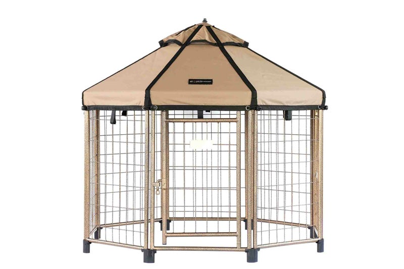 152.5のペット ガゼボ ユニットのサイズは、床から屋根フレームの頂点まで幅 152.5×152.5cmです。 個々のパネルのサイズは幅61 x 高さ104cmです。