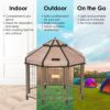 122cmのペット ガゼボ ユニットのサイズは、床から屋根フレームの頂点まで幅 122×122cmです。 各パネルのサイズは幅45.7cm x 高さ76cmです。
