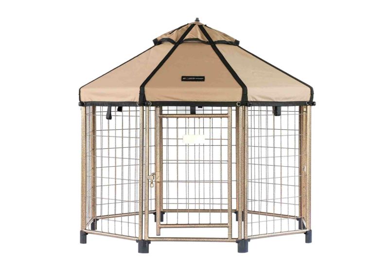 152.5のペット ガゼボ ユニットのサイズは、床から屋根フレームの頂点まで幅 152.5×152.5cmです。 個々のパネルのサイズは幅61 x 高さ104cmです。