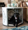 ペットオーナーのそばでペットができるだけリラックスして落ち着ける空間を用意すると同時に天板部分は物を置いたりすることができるのでお部屋やリビングに置いても映えるデザインを大事にして作られています。