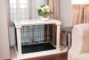 木のフレームとスチール網のコンビがインテリアにマッチする素敵なペットクレート。クレートトップはしっかりとした木製の板なので機能的なサイドテーブルとしても使えるのでリビングルーム、ファミリールーム、ベッドルームなどにもマッチします。 メタルクレートには、クレートの底に取り外し可能なプラスチックトレイが付いていますので、簡単にクリーニングできます。 さらに、取り外し可能なステンレススチールクレートデバイダーが含まれており、あなたの子犬のクレートトレーニングを成功させるために内部空間を仕切ることができます。 クレートカバー付きで、ほとんどの犬種に対応するために3種類のサイズがあります。 非常に組立や分解が簡単でハードウェアは不要です。 デザイン特許申請中。