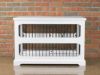 見た目もスタイリッシュなペットクレートとサイドテーブルを兼ね備えている室内用ドッグハウス。 正面のドアは、側面にスライドして収納できるので常にオープンにすることもできますしドアを締めておくこともできます。 床面の追加の強度のためのソリッドボトム クラシックな装飾スタイル 塗装されたMDFおよび金属製の網の構造 大型犬でも使えるサイズの室内用のケージです。サイズ90 x 55 x 59.7cm、重量22.8kg