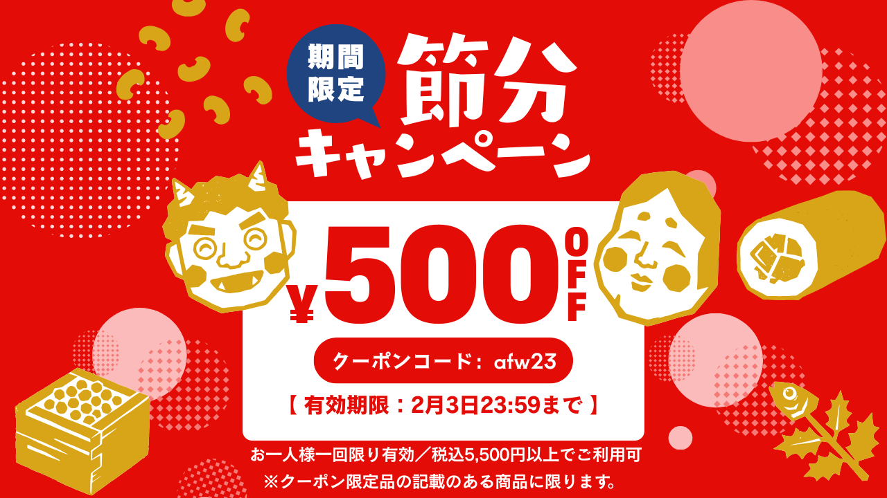 2月3日23時59分までおひとり様何度でもご利用いただける期間限定クーポンプレゼント!