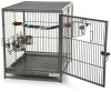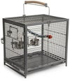 【アメリカMIDWEST】アメリカミッドウエスト社バードケージキャリー。 最新技術の鳥かごは、鳥ちゃんに高級な、安全な旅行用宿泊設備を提供します 鳥ちゃんを移動したりそのままケージとしてお使いいただいたりできる持ち運び移動型バードケージです。 サイドに大きく開くドアと小さなドア(どちらもロック付き)とそこにもスライド式の底板がついています。 トップをスライドさせててんじょうをオープンにすることもできます。 綿のロープ状の止まり木とステンレスのエサ入れが2個 持ち手のハンドル部分が止まり木になっています。 ◎サイズ: 35.6 H x 45.7 W x 35.6 Dcm