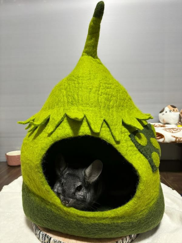 ふんわり包み込む、アメリカ生まれのウール手作りぽかぽかベッド — あなたの猫に極上のぬくもりを!妖精さんのおうちのようなデザイン 猫用 ベッド ダルマドッグカルマキャット フェアリーハウスケイブ グリーン