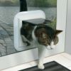 猫ちゃんのためのプラスチックキャットドア。シングルガラス用です。透明なフラップで静かなアクションが可能です。特別なシーリングと磁気ロック付きで安全ロック付き。 奥行最大1.3 cm サイズ27×27 cm カットサイズ直径26cm フラップサイズ14.7×15.8 cm