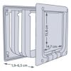 猫ちゃんのためのプラスチックキャットドア。透明なフラップで静かなアクションが可能です。特別なシーリングと磁気ロック付きで安全ロック付き。 ドアや壁の幅に合わせて2個のトンネルが付属しています。奥行はトンネル仕様で最大1.9-6.5 cm サイズ21×21 cm カットサイズ16.2×17cm フラップサイズ14.7×15.8 cm