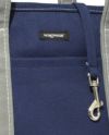 スタイリッシュなバッグで一緒におでかけ! NYの人気ブランドより直輸入の丈夫でオシャレなドッグ・バッグ。 このブランドの中でも一番人気のキャンバスキャリアが3色使いのコンビカラーになってよりお洒落でカジュアルなキャリーバッグができました! キャンバス生地と底部と持ち手部分のアクセントカラーがコンビになっています。ワンちゃんが楽に外を覗けるよう、バッグ横部分が一方のみ低くなっています。また、バッグ内部にジッパーポケットがつきました。 バッグ上部はジッパーで開閉、前面にもポケットがついています。 内側には飛び出し防止リードフックと安定用底板付きで安心。丁寧に縫製され、とても丈夫なハイクオリティー・バッグです♪ 飛び出し防止のリードフック付きで飼い主さんも安心! Made in NY.