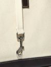 スタイリッシュなバッグで一緒におでかけ! NYの人気ブランドより直輸入の丈夫でオシャレなドッグ・バッグ。 このブランドの中でも一番人気のキャンバスキャリアにレザーのショルダー(持ち手)がついてよりお洒落でカジュアルなキャリーバッグができました! キャンバス生地と底部のアクセントカラーがコンビになっています。ワンちゃんが楽に外を覗けるよう、バッグ横部分が一方のみ低くなっています。また、上部にはトグルクローズになっています。内側には飛び出し防止リードフックと安定用底板付きで安心。丁寧に縫製され、とても丈夫なハイクオリティー・バッグです♪ 飛び出し防止のリードフック付きで飼い主さんも安心! Made in the USA.
