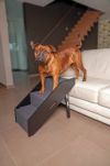 しっかりとした室内用の犬用のペットスロープ。表側は階段、裏側はスロープになっている2イン1構造! 滑り止めマット付き。使用しないときは折りたたんで持ち運び可能。大型犬種、シニア犬、回復期にある犬、子犬のための理想的なスロープです。 両サイドには持ち運びしやすいように手を入れる空洞があります。使用するときは内側の足を出して高さを調節してください 。階段にもフラットスロープにもできます。大きさL: 62 cm W: 36 cm H: 51 cm 耐荷重40kgまで