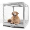 頑丈なパネルのガレージスタイルのサイドドアは、スライドしてオープンコンセプトのラウンジを作成したり、取り外して子犬の仕切りを簡単に取り付けることができます. さらに、サイドドアはクレートを子犬にとってより魅力的なものにし、老犬や怪我をした犬に最適です