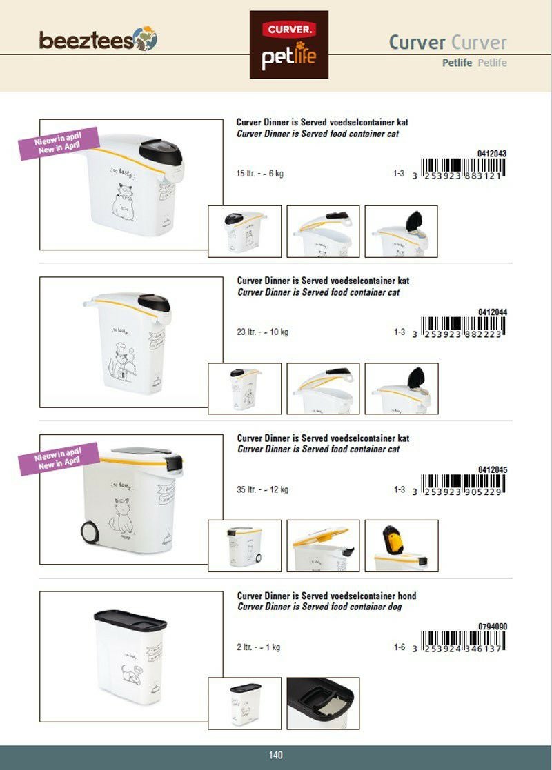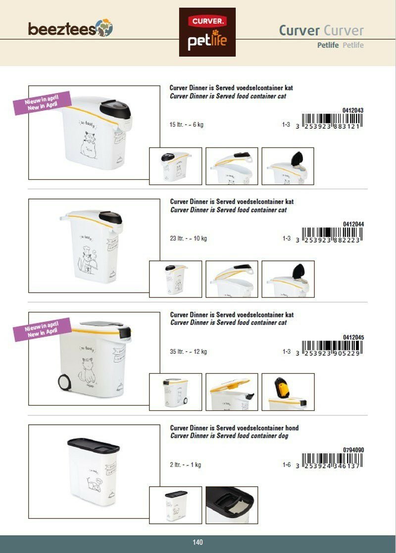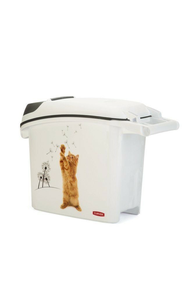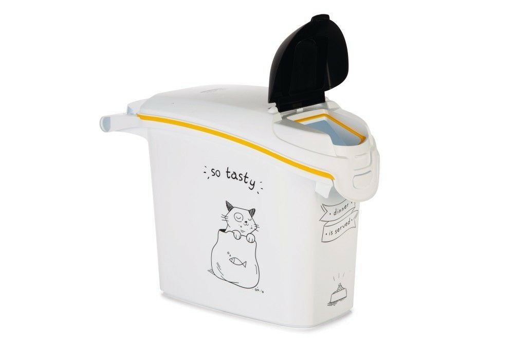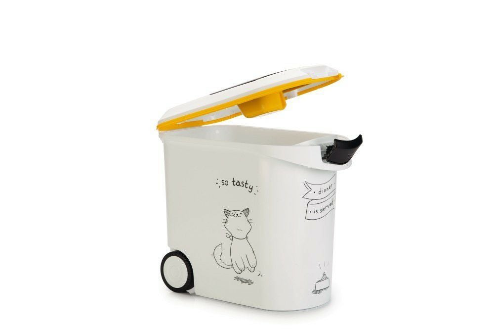 生活用品で世界中で有名なCURVERからペット用品が登場! 猫用 キャットフードストッカー カーバーペットライフ NEWキャットシルエットフードコンテナ ホワイトイエロー 35L 12KG Curver Pet Life Style キャットフード 保存 容器