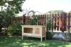 スタイリッシュな小屋の設計のラビットケージです。 ベーシックな屋外用ラビットケージです。 引き出しがついていてお掃除も簡単。 2部屋別々にドアがついています。 高品質のバーで屋根部分がオープンの時に固定できます いろいろな天候や気温に左右されないために加工した屋根。 ケージ内部の高さ40cm サイズ:100 x 45 x 62 cm