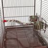 【アメリカMIDWEST】アメリカミッドウエスト社バードケージキャリー。 最新技術の鳥かごは、鳥ちゃんに高級な、安全な旅行用宿泊設備を提供します 鳥ちゃんを移動したりそのままケージとしてお使いいただいたりできる持ち運び移動型バードケージです。 サイドに大きく開くドアと小さなドア(どちらもロック付き)とそこにもスライド式の底板がついています。 トップをスライドさせててんじょうをオープンにすることもできます。 綿のロープ状の止まり木とステンレスのエサ入れが2個 持ち手のハンドル部分が止まり木になっています。 ◎サイズ: 35.6 H x 45.7 W x 35.6 Dcm