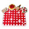 イタリアの饗宴という名のスナッフルマット。マンマ・ミーア!!!イタリアの饗宴のようにテーブルクロスに並んだトマト、フレッシュモッツァレラチーズ、バジルのサラダとワインのボトルにおやつを隠して遊びましょう!!