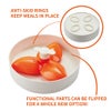 底面には4つの大きな滑り止めリングを装備し、食事中も抜群の安定感を提供。中のパーツは交換可能なサステナブル設計で、プラスチック消費を抑えながら長くご愛用いただけます。