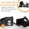 屋根の部分は600デニールのナイロンとその裏に張られたビニールによって雨や雪から小屋を守る防水構造になっています。複数の猫ちゃんでご使用できます。組み立ても簡単です。 保護猫ちゃん用に人気の商品です。サイズ:L56×W68.6×H68.6cm