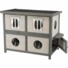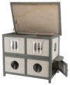 野生の猫に、TRIXIEの木製の猫の家をスタイリッシュに提供します。この猫ちゃんのおうちは長持ちする屋外使用のための耐久性のある無毒のモミの木で作られています。 その革新的なデザインにより、最大4匹の猫ちゃんを風雨から保護します。万が一イタチなどの外敵が来ても逃げることができるように1階部分は裏側にも脱出口があります。複数の猫のためのまたは野良猫のための家として理想的な避難所。4つの独立したコンパートメント。脱出扉付き。個別の入口と出口のコンセプト。ロック可能なドアを介した低層へのアクセス。ロックアーム付きヒンジ屋根で屋根がオープンできます。天候保護用のプラスチックフラップが含まれています。