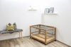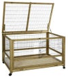 1962年からペット用品を製造するドイツのペット用品ブランド。 幼稚園や学校、保育所でもオススメの室内で使えるラビットケージです。正面とサイドには敷き詰めた藁などが飛び散らないようにプレキシガラスがついています。そのため中のうさぎちゃんなどの様子がよく見えます。お掃除しやすいように高さ2cmの引き出しがついていて、天井部分も大きくオープンできます。移動が簡単にできるようにロック付きキャスターがついています。本体:無垢の木製、保護用の木の色。 サイズ26 x 75 x 70 cm