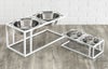 シカゴからデザインがかわいいペット用品が登場! 橋、バルコニー、さらにはフランクロイドライトの有名な家で使用されているカンチレバーデザインの建築の伝統からインスピレーションを得ています。この頑丈でモダンなドッグフィーダーは、高品質の頑丈なスチールと、白色のUV保護仕上げでコーティングされた粉体で構成されています。ダブルダイナーはフードとお水とそれぞれ分けて一緒に置きたいときや多頭飼いでそれぞれ別のフードボウルにしたりするときに重宝します。 その上どんなインテリアにも合うようにデザインに力を入れています。