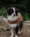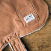 シェル: カーキキャンバス ライニング: クリームフォックスシェルパお腹部分と首元に簡単に止めることができるベルクロストラップ サイドにポケットがついた初めてのデザイン .センターバックにハーネスホールがあります。 Exclusive Billy Wolf design Handcrafted in the USA