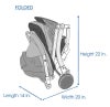 サイズ: L 71 W 50.8 H 101.6cm。折りたたみ時: L 35.6 W 66 H 56cm。キャリーバッグサイズ:閉じているとき: L 33 W33cm。開いているとき: L 68.5 W 33cm。本体重量:合計 7kg。耐荷重:20kgまで