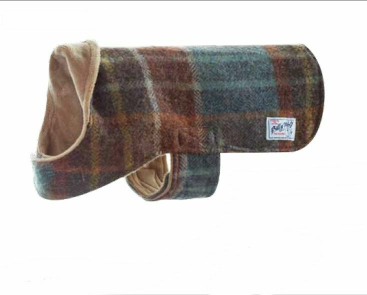 シェル: ブルー、ブラウン&ラストのプレードウール?ライニング: スーパーソフトなダークカーキのフェイクシープボア お腹部分と首元に簡単に止めることができるベルクロストラップ .センターバックにハーネスホールがあります。 Exclusive Billy Wolf design Handcrafted in the USA