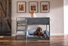 ※ベッドのデザインが紐のついていないほうのベッドになります。。日本メーカーの商品ではほとんどない大型犬や超大型犬やうさぎ小屋などに特化したオリジナルのEcoFlexというエコ素材を使用したペットメーカー! ecoFlexとはリサイクルポリマーと木をブレンドして作られたエコ素材で、その特徴は全天候型(気温と湿度の変化に対応)、腐敗しにくい(腐りにくい)虫が寄ってきにくい、常に形状が安定しているという特徴があります。またねじれにくい、曲がりにくい、ひびが入りにくいなど様々な特徴があり、中のわんちゃんを傷つけることがありません。2段ベッド仕様のペットベッドです。91.5cmある高さのはしごを登って上と下でそれぞれわんちゃんがゆっくり休めるようになっている大型ベッドです。クッションは取り外し可能です。 31.8kgまでのわんちゃんに使用可能です。 サイズL145×D69×H92cm