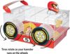 【アメリカMIDWEST】アメリカミッドウエスト社ハムスターケージです。 普通のハムスターケージと違い付属のパーツで非常に面白いハムスターケージが完成します。こちらはレースカー仕様のケージです。 ハムスターホイールに外付けでタイヤが取り付けられることによってハムスターちゃんがホイールで遊ぶたびにタイヤがくるくる回ります。 ケージの入り口はトップにあるのでそこから出入り可能です。人とは違うハムスターケージを御所望の方は是非! サイズ35.1 L x 49.2 W x 24.8 H cm、重量2kg、Includes: (2) Exercise Wheels, Water Bottle, Food Bowl, Hideout Hut, Clip-on Art, and Decals
