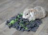 うさぎちゃんのための知育玩具。早食い防止にも効果的。二種類の長さの違うポリエステルでできたタッセルがおやつやフードを隠して中から探して食べる楽しみを得られるおもちゃです。うさぎちゃんにとっても運動不足解消になり毎日の給餌にも使用できます。ベースに入っているプラスチックトレイは取り外し可能でしわになるのを防ぎます。