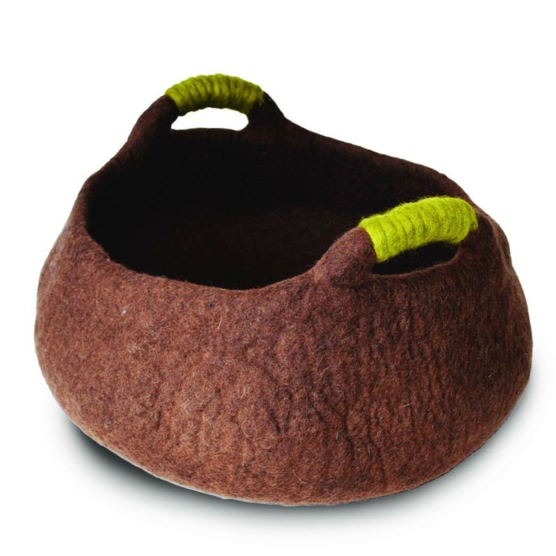 猫ちゃんが楽しむウールでできたベッド!バスケットのデザインをしたベッドです。洞窟は安全で暖かい避難所を提供し、猫ちゃんが安全にお休みするのを助けることができます。 長さ約35.6cmの洞窟は、6.35kgまでのペットに最適です。