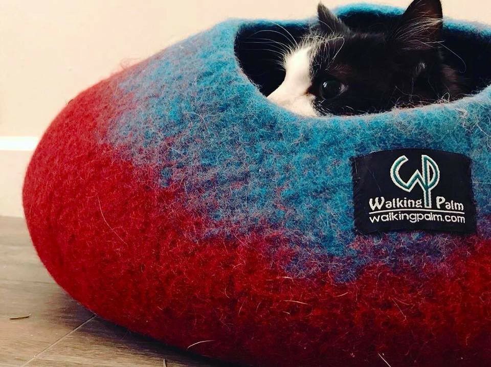 ふんわり包み込む、アメリカ生まれのぽかぽかベッド — あなたの猫に極上のぬくもりを! 猫用 ベッド Walking Palms ウォーキングパーム キャットケイブ マルーンティール ベッド カドラーあったか