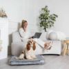 モダンなペットベッドには 2 つのサイズがあり、コアラ グレーとバニラの 2 つの異なる色のクッションからお選びいただけます。