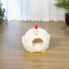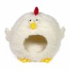 Comfy Chicken の外装は、黄色と赤のアクセントが付いた短い毛むくじゃらの白い生地で覆われています。