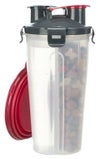 お外に持ち歩くのにも便利なお水とフードを別々に入れて持ち運びできるコンテナ。防水蓋付きの2つの独立したチャンバーがありチャンバーを個別に使用するためのふたの2つの開口部がついています。フック付き、たたむことができるシリコン製ボウルつきなのでお水を飲みたいときやフードを食べたいときは外して使用でいます。サイズ2 × 0.35 l/直径 11 × 23 cm